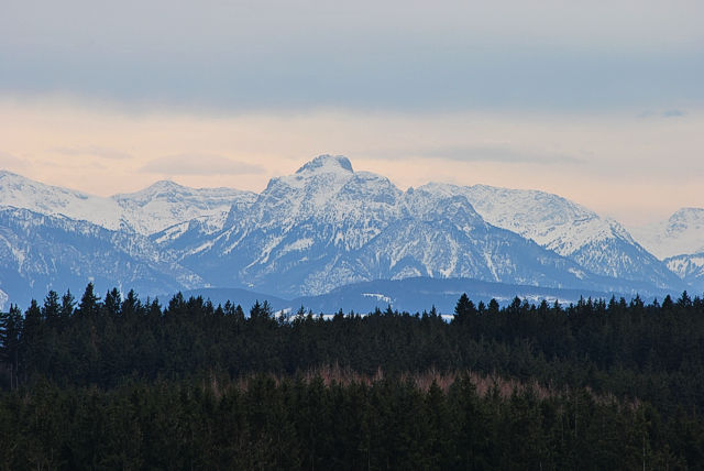 Blick auf den frisch verschneiten Säuling, den Hausberg der Kaufbeurer