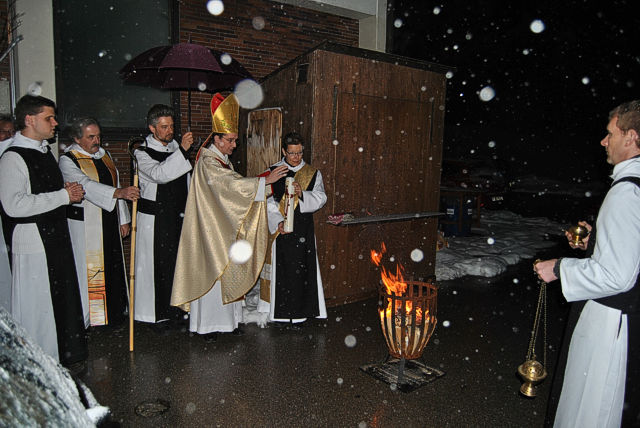 Leider schneite es etwas, so dass wir Abt Michael beschirmen mussten
